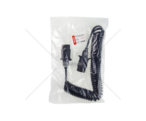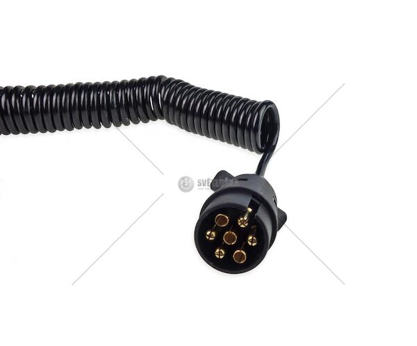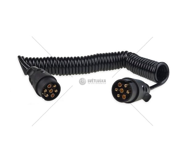 7-pólový pružinový kabel. Zajistí dobré spojení, protože díky spirálovitému tvaru se dá prodloužit na délku asi 6 m. Na obou koncích je plastová zástrčka 7PIN. TECHNICKá SPECIFIKACE: Materiál: PVC Napájení: 12V Délka po natažení 6m 2x 7-pólová koncovka