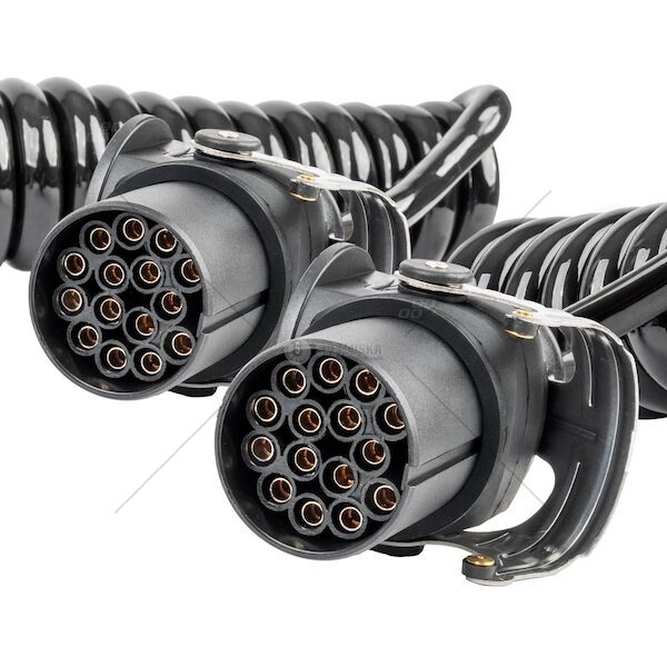 Profesionální spirálový kabel se dvěma 15 PIN konektory, určený pro 24V instalace. Poskytuje komplexní elektrické propojení mezi tahačem a návěsem – pro osvětlení, ABS/EBS systémy a další zařízení podle normy DIN ISO 12098. Spirálová konstrukce o délce 5 metrů umožňuje flexibilitu a odolnost vůči tahu i při náročném provozu. Konektory 15 PIN jsou vyrobeny z odolných materiálů, které zvládnou extrémní podmínky a mechanické zatížení. Vlastnosti: Typ konektorů: 2x 15 PIN Provozní napětí: 24V Délka: 5 m (po natažení) Použití: elektrické spojení mezi tahačem a návěsem – včetně ABS/EBS Norma: DIN ISO 12098 Odolnost vůči povětrnostním vlivům, vibracím a oděru Ideální řešení pro dopravce, kteří potřebují spolehlivý a trvanlivý kabelový systém.