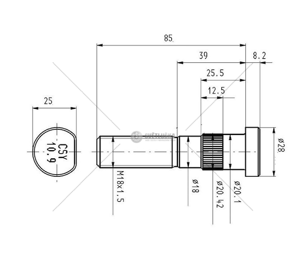 Šroub kolový BPW M18x1,5x85 mm DL GW.43 CSY AZBP-0038