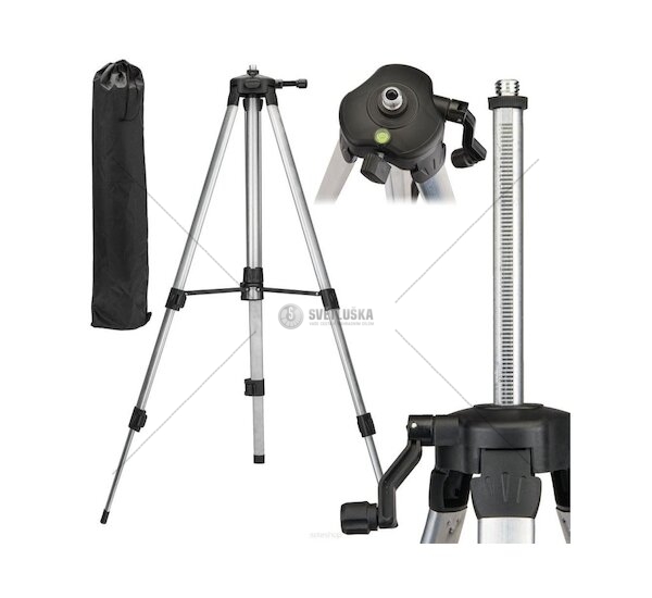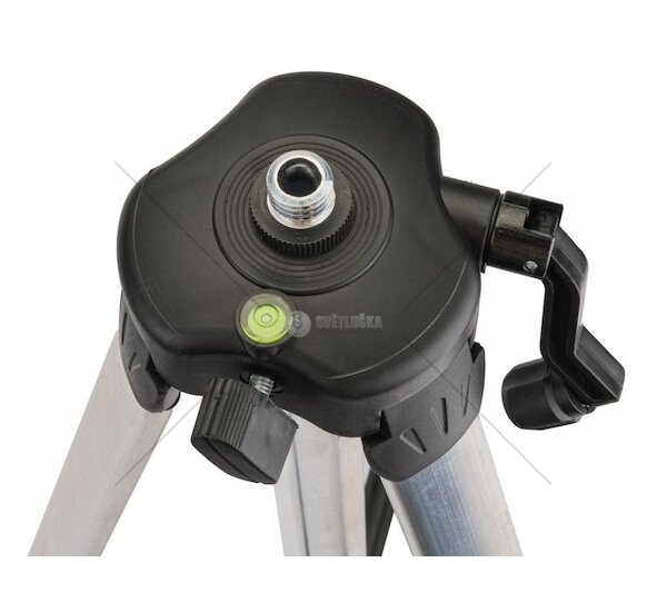 Stativ disponuje závitem 5/8", který umožňuje snadné připojení kompatibilních měřicích zařízení. S nosností 2,0 kg a třema nohama je konstrukce tohoto stativu dostatečně stabilní pro spolehlivé držení laserového nástroje v požadované poloze. Vestavěná vodováha a zvedací hlava přidávají na praktičnosti a usnadňují precizní nastavení přístroje na požadovaný úhel a výšku.