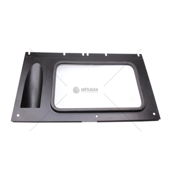 Určení: zadní část kabiny, provedení s úplným zasklením a integrovaným držákem na kolovrat; při instalaci věnujte pozornost správnému dosednutí těsnění, přesnému ustavení držáku a kontrole souladu s katalogovým označením vozidla.