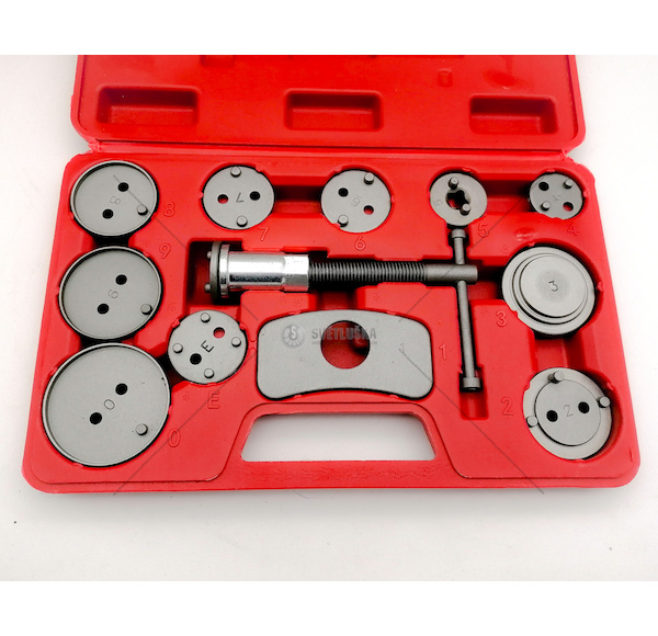 Univerzální sada v plastovém kufru slouží pro montáž/zpětné vracení pístů/třmenů kotoučových brzd a obsahuje šroubový přípravek a 10 adaptérů. U vozidel s třmeny kotoučových brzd a s integrovanou jednotkou ruční brzdy se zpětné vracení brzdových pístů provádí zpětným otáčením, u ostatních vozidel zpětným stlačením těchto pístů.