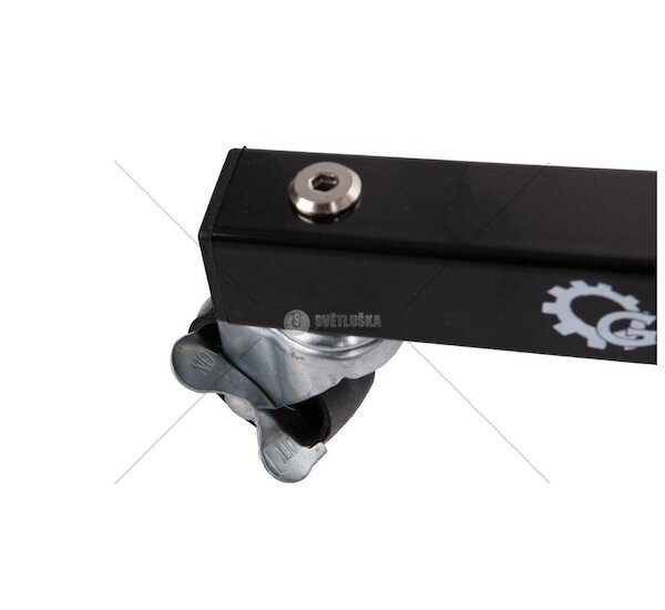 - Brzdy - Dvě ze čtyř koleček jsou opatřena brzdami, které zajišťují stabilitu a bezpečnost při používání stojanu. Brzdy umožňují stojan zastavit na požadovaném místě bez rizika pohybu.