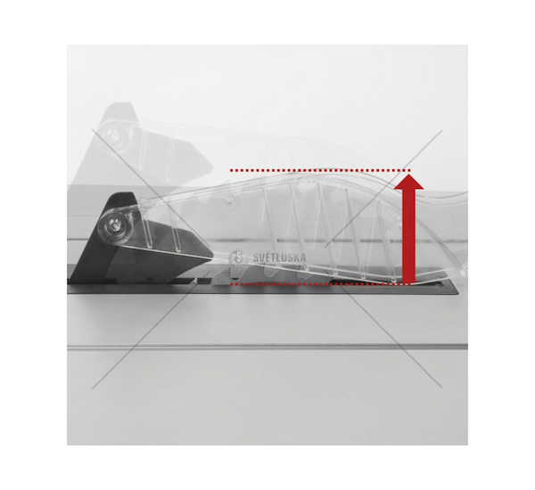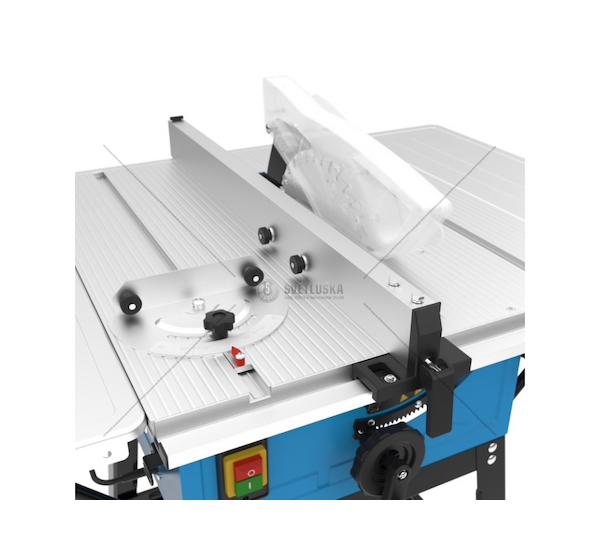 - Stolní kotoučová pila s plynule nastavitelnou výškou pilového kotouče.