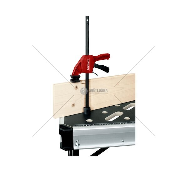 Vertikální přítlačná svěrka FORTUM je praktický doplněk k multifunkčním pracovním stolům s otvory Ø20 mm. Umožňuje bezpečné a stabilní upnutí obrobků s rozsahem 0–250 mm a upínací silou až 60 kg. Ideální pro přesné práce v dílně i na stavbě.