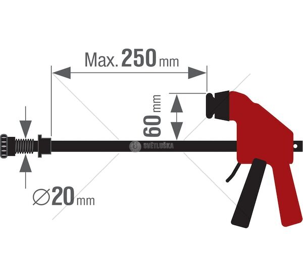 - upínací rozsah: 0–250 mm