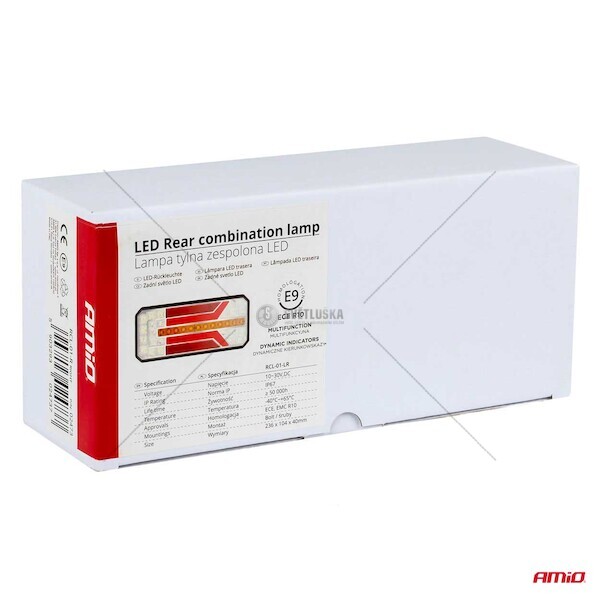 Zadní sdružené světlo LED pravé / levé s dynamickým indikátorem směrových světel Funkce světla: poziční, zpětné, směrové, brzdové, mlhová Homologace: EHK E9 R10 Napětí: 10-30V DC IP 67: vodotěsný Rozměry: 236x104x40 mm SVíTIDLA se PRODáVAJí ZA KUS - UVEDENá CENA JE ZA 1 KUS!