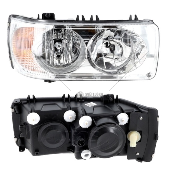 Světlomet hlavní určený pro vozidla DAF XF105, XF95, CF85, LF45 a LF55, odpovídající normě Euro 4. Tento světlomet je vybaven žárovkami H7 a H1 a je klíčovou součástí osvětlení vozidla, zajišťující bezpečnou a pohodlnou jízdu za snížené viditelnosti. Správné fungování světlometů je nezbytné pro včasné rozpoznání překážek a reagování na měnící se podmínky na silnici. Použití kvalitního světlometu, jako je tento model, přispívá ke zvýšení bezpečnosti řidiče i ostatních účastníků silničního provozu. Světlomet splňuje přísné evropské normy a je navržen pro dlouhou životnost a spolehlivý provoz. Instalace světlometu by měla být provedena kvalifikovaným automechanikem, aby byla zajištěna správná funkce a bezpečnost. Kvalitní osvětlení je základem bezpečné jízdy a tento světlomet poskytuje optimální viditelnost v různých světelných podmínkách. Při výměně světlometu je důležité používat originální díly nebo díly od renomovaných výrobců, které zaručují kompatibilitu a spolehlivost. Tento světlomet je ideální náhradou za opotřebované nebo poškozené světlomety u vozidel DAF s uvedenými typovými označenímmi. Správná funkčnost světlometů je pravidelně kontolována a případné závady by měly být okamžitě odstraněny. Výměna světlometu je preventivní úkon, který přispívá k zajištění bezpečnosti a komfortu jízdy.