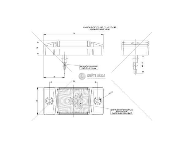 Důležité: 12/24V, 45cm kabel, 3 diody, HOR40TECHNICKÝ LIST