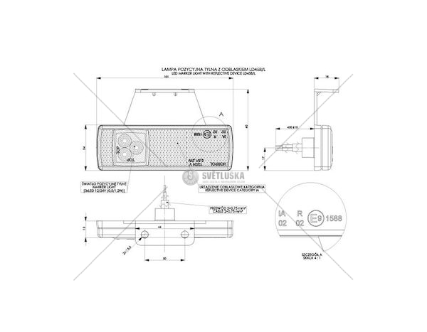 Důležité: 12/24V, 45CM kabel, s odrazkou, levá, HOR41TECHNICKÝ LIST