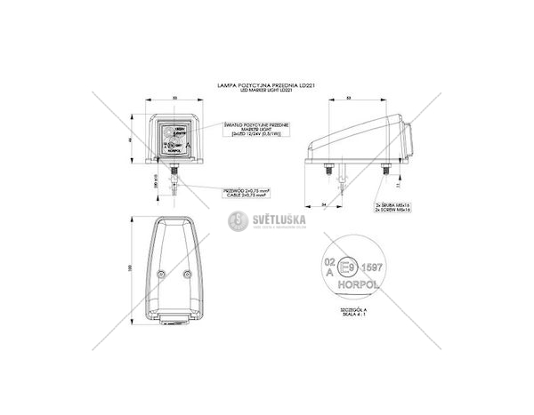 Důležité: 12/24V, 25cm kabel, výška 47mm, HOR44TECHNICKÝ LIST