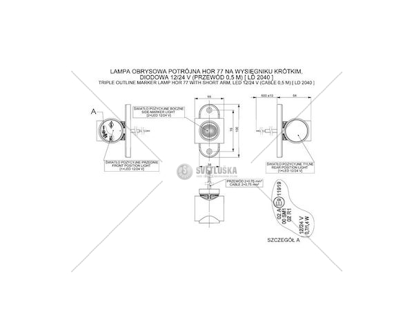 Důležité: 12/24V, 50CM kabel, délka 64MM, 3-barevná, HOR77,TECHNICKÝ LIST