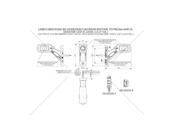Důležité: 12/24V, 40CM kabel, délka 135MM, 3-barevná, HOR53TECHNICKÝ LIST