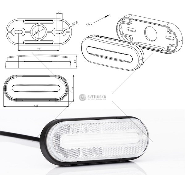 Svítilna poziční 12v/24v led bílá s odrazkou, kabel 0,25 m 0133188_A