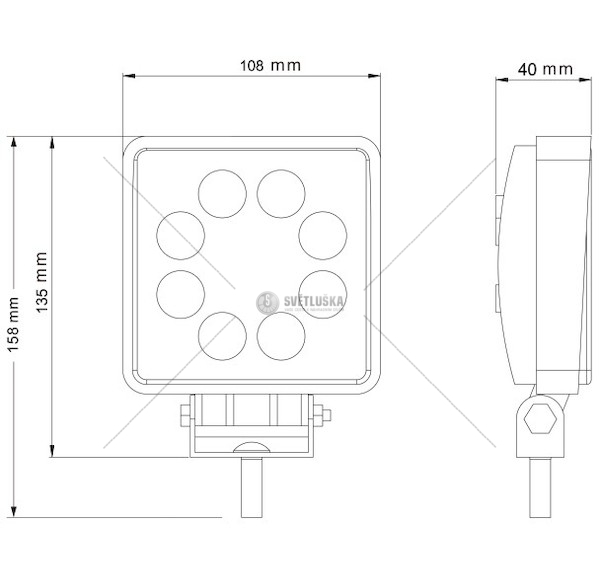Svítilna pracovní čtvercová 8 LED 8X3W JG-W081-F