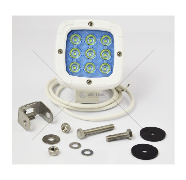 Univerzální pracovní lampy LED, kloubový držák, bílý barevný kryt. Vyrobeno použitím montážních prvků odolných proti kyselinám. Určeno speciálně pro vodní plavidla a 1,5 m dlouhý kabel.
