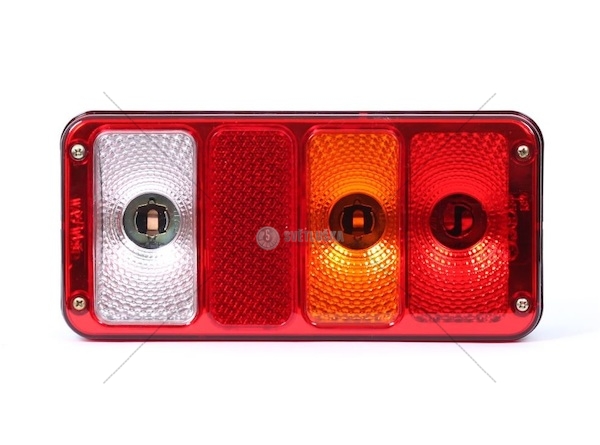 napětí : 12-24V rozměr : 240x100x57mm rozteč šroubů pro uchycení : 150 mm velikost šroubů pro uchycení : M5 lampa bez žárovek do kompletu potřebné žárovky : 2x P21W, 1x P21/5W, 1x C5W
