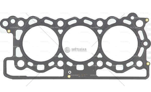 Těsnění hlavy válců Victor Reinz, určené pro motor Discovery 3.0 4X4 s 5 zářezy. Toto těsnění zajišťuje spolehlivé utěsnění mezi blokem motoru a hlavou válců, čímž zabraňuje úniku chladicí kapaliny a spalovacích plynů do vnitřních prostorů motoru. Průměr těsnění je 85 mm a tloušťka 1,32 mm. Konstrukce s pěti zářezy je specifická pro daný typ motoru a zajišťuje optimální těsnicí vlastnosti v kombinaci s příslušným utahovacím momentem. Použití kvalitního těsnění hlavy válců je klíčové pro udržení správné komprese v válcích a tím i pro efektivní spalování a výkon motoru. Nedostatečné utěsnění může vést k přehřívání motoru, ztrátě výkonu a v extrémních případech i k jeho poškození. Těsnění Victor Reinz je vyráběno s důrazem na přesnost a spolehlivost, aby splňovalo požadavky moderních motorů. Při výměně těsnění hlavy válců je nezbytné dodržovat doporučený postup výrobce, včetně správného utahování šroubů hlavy válců a kontroly rovinnosti povrchu hlavy válců a bloku motoru. Toto těsnění je kompatibilní s vozidly Discovery 3.0 4X4 a je vhodné pro běžnou údržbu a opravy motoru. Doporučuje se výměna těsnění hlavy válců při každé demontáži hlavy válců, a to i v případě, že původní těsnění nevykazuje zjevné poškození. Použití kvalitního těsnění hlavy válců Victor Reinz přispívá k dlouhé životnosti a spolehlivému provozu motoru.