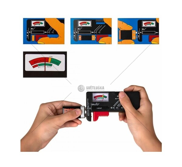 Tester baterií - malé zařízení, které umožňuje velmi jednoduchým a rychlým způsobem zkontrolovat, zda jsou námi používané baterie a akumulátory funkční.