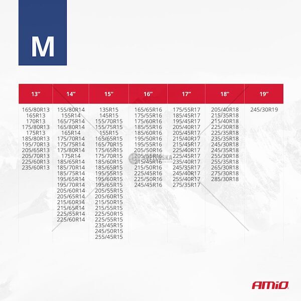 Textilní sněhové řetězy M EN16662-1 Önorm V5121 2 ks AMIO-04081