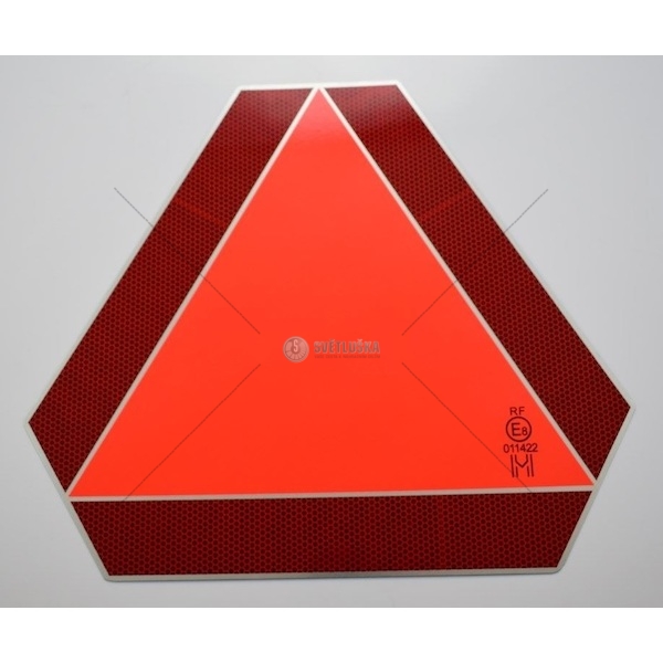 Výstražný trojúhelník pro pomalá vozidla. Materiál kov. Homologace. Povinná výbava pro pomalu jedoucí vozidla. Upevnění nýtováním, nebo speciálním držákem.