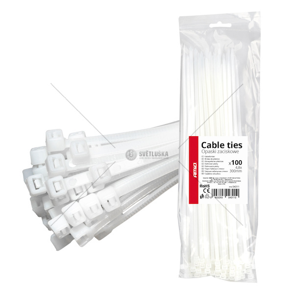 Upínací pásky bílé 4,8 × 300 mm 100 ks. AMIO-04311