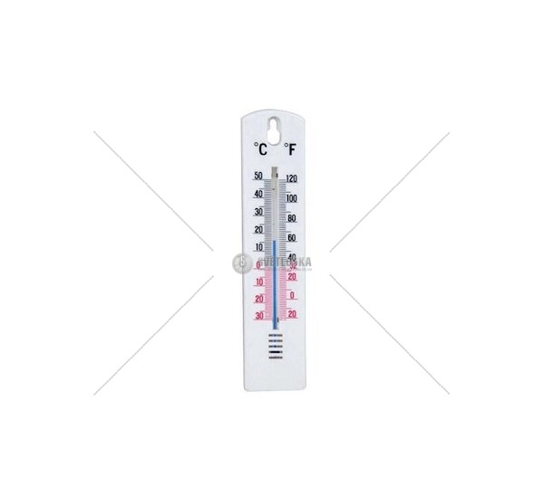 - Bílý venkovní teploměr s plastovým podkladem