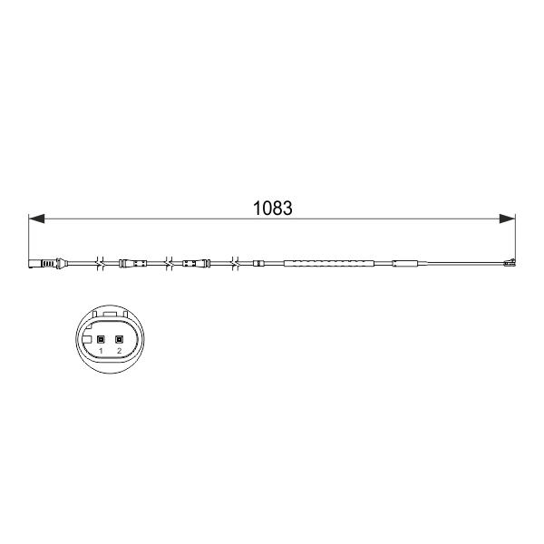 Při montáži věnujte pozornost celkové délce kabelu (1083 mm), aby nedošlo k napnutí nebo poškození vodiče v blízkosti brzdového mechanismu. Před instalací ověřte kompatibilitu s konkrétním modelem vozu a typem brzdového systému. Zkontrolujte, zda je senzor správně zapojen do elektrického obvodu pro aktivaci kontrolky.
