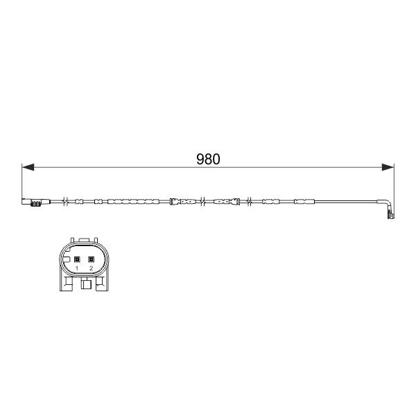 Při montáži zkontrolujte, zda je senzor správně zasunut do drážky brzdové destičky a zda není kabel poškozen. Před instalací ověřte kompatibilitu délky 980 mm s vaším vozidlem a porovnejte číslo dílu s originálem.