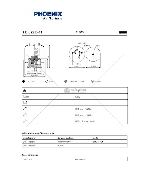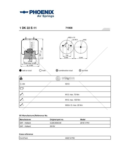 Vzduchový měch SAF Krone kompletní Phoenix 1DK22E-11
