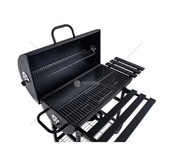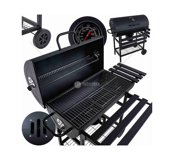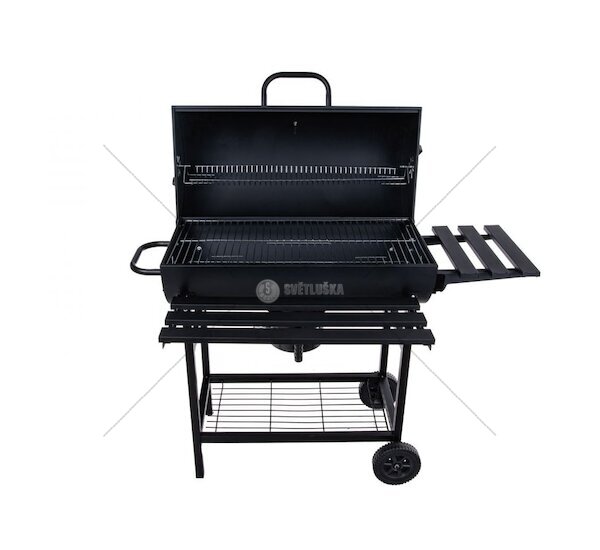 Gril na dřevěné uhlí, s nastavitelným roštem 70 x 35 cm, s teploměrem, víkem a sklopnými odkládacími policemi vhodný pro různé typy grilování – od steaků až po zeleniny. Ideální gril pro rodinné oslavy, přátelská setkání nebo romantické večeře pod hvězdami.