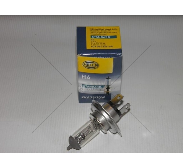 Žárovka, hlavní světlomet HELLA 8GJ 002 525-251 je určená jako zdroj světla pro hlavní světlomety. Tato halogenová žárovka typu H4 je vyrobena společností HELLA a disponuje transparentním provedením. Žárovka s paticí P43t-38 je dodávána v krabici, jeden kus v balení. Disponuje jmenovitým výkonem 75/70 W a napětím 24 V. Žárovka má typové schválení ECE a splňuje požadované normy. HELLA 8GJ 002 525-251 je vhodná pro náhradu stávající žárovky při běžné údržbě vozidla. Správná funkčnost hlavního osvětlení je klíčová pro bezpečnost provozu. Doporučuje se odborná montáž a demontáž tohoto dílu. Pro optimální výkon a dlouhou životnost doporučujeme používat kvalitní žárovky od renomovaných výrobců.