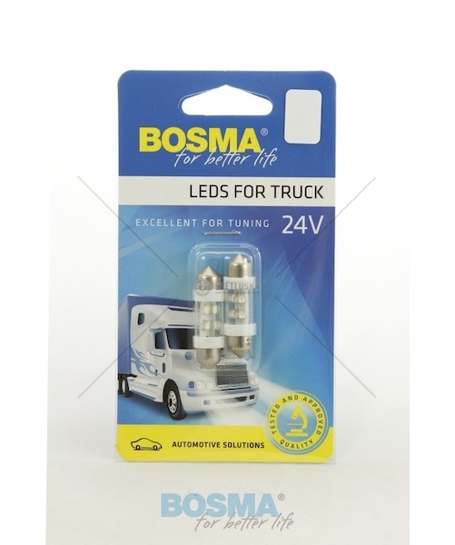 Tato sada obsahuje dva LED žárovky Bosma určené pro osvětlení interiérů vozidel a dalších prostor vyžadujících napájení 24V. Každá žárovka disponuje výkonem 5W a paticí SV8,5, což zajišťuje snadnou a bezpečnou instalaci do standardních svítidel. Technologie LED zaručuje energetickou účinnost, dlouhou životnost a jasné, kvalitní osvětlení. Žárovky jsou vybaveny čtyřmi LED diodami, které poskytují rovnoměrný a příjemný světelný výkon. Konstrukce je odolná vůči vibracím a nárazům, což je typické pro komponenty používané v automobilovém průmyslu. Tato sada je ideální pro renovaci interiérů, instalaci do karavanů, obytných automobilů a dalších vozidel, kde je vyžadováno kvalitní a spolehlivé osvětlení s nízkou spotřebou energie. Produkt je dodáván v balení s dvěma žárovkami, což představuje výhodnou volbu pro ty, kteří chtějí mít náhradní žárovku po ruce. Díky kompatibilitě s paticí SV8,5 je instalace jednoduchá a rychlá, aniž by bylo potřeba specializované nářadí. Použití LED technologie přispívá k snížení provozních nákladů díky menší spotřebě energie a delší životnosti oproti tradičním žárovkám. Žárovky Bosma jsou známé pro svou spolehlivost a vysokou kvalitu zpracování, což zaručuje dlouhodobý a bezproblémový provoz. Tato sada je ideální pro náročné zákazníky, kteří hledají kvalitní a energeticky úsporné osvětlení do svého vozidla nebo obytného prostoru. Zajišťují jasné a kvalitní osvětlení, které zlepší komfort a bezpečnost v interiéru vozidla. Díky nízké spotřebě energie pomáhají snižovat provozní náklady a minimalizují dopad na životní prostředí. Sada obsahuje 2 kusy, což je ideální pro náhradní díly nebo pro instalaci do více svítidel.