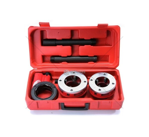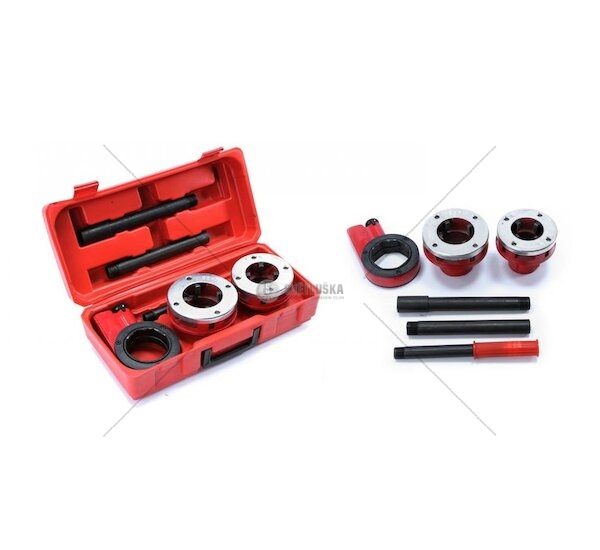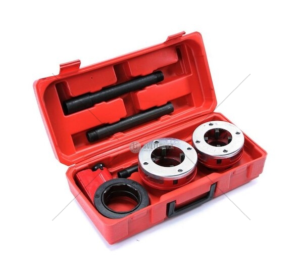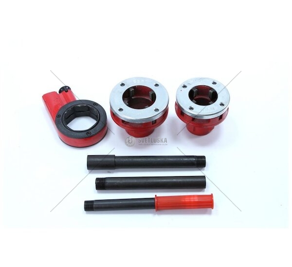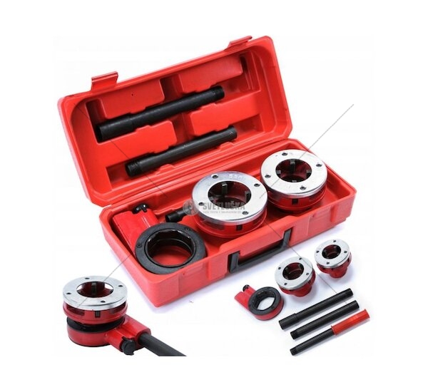 Závitníky v palcové soustavě určené na řezání závitů na potrubí. Sada obsahuje 2 litinové závitníky s 4 noži z nástrojové oceli, ráčnovou hlavu a dvojdílnou rukojeť. Vše uloženo v plastovém kufříku.