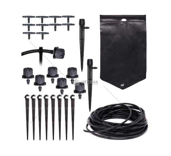 Zavlažovací sada pomůže zajistit optimální hydrataci pokojových i zahradních rostlin a ušetří vodu i čas. Rovnoměrně dodává vodu přímo ke kořenům rostlin. Správné dávkování vody jednoduše nastavíte na trysce zavlažovače, každá tryska zavlažovače jde optimálně nastavit pro každou rostlinu dle potřeby její závlahy. Do nádržky zavlažovače můžete přidat i tekuté hnojivo pro podporu a růstu.
