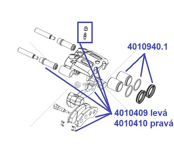 4010410. Kompletní přední brzda P včetně destiček, Multicar M26
