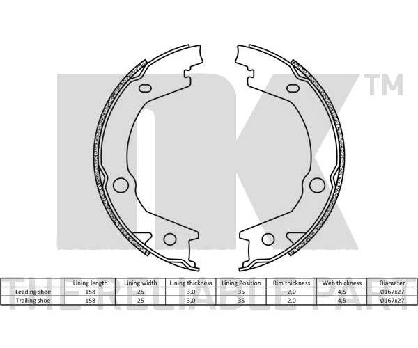 Sada brzdových čelistí, parkovací brzda NK 2734745