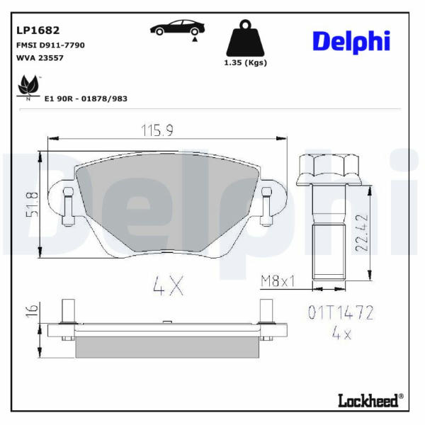 Sada brzdových destiček, kotoučová brzda DELPHI LP1682