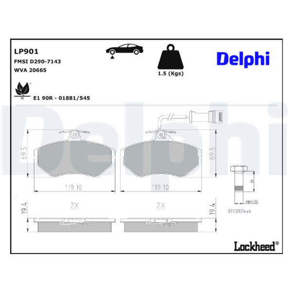 Sada brzdových destiček, kotoučová brzda DELPHI LP901